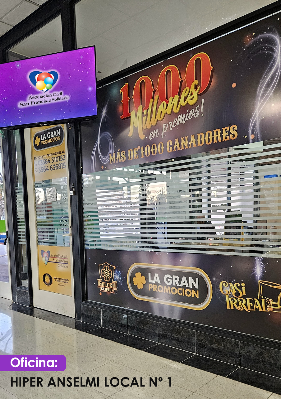 SINO TAMBIÉN PODES ACERCARTE A LA OFICINA QUE SE ENCUENTRA EN HIPER ANSELMI LOCAL Nº 1 O COMUNICATE CON LOS TELEFONOS 03564-310153 / 03564-15636815